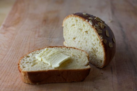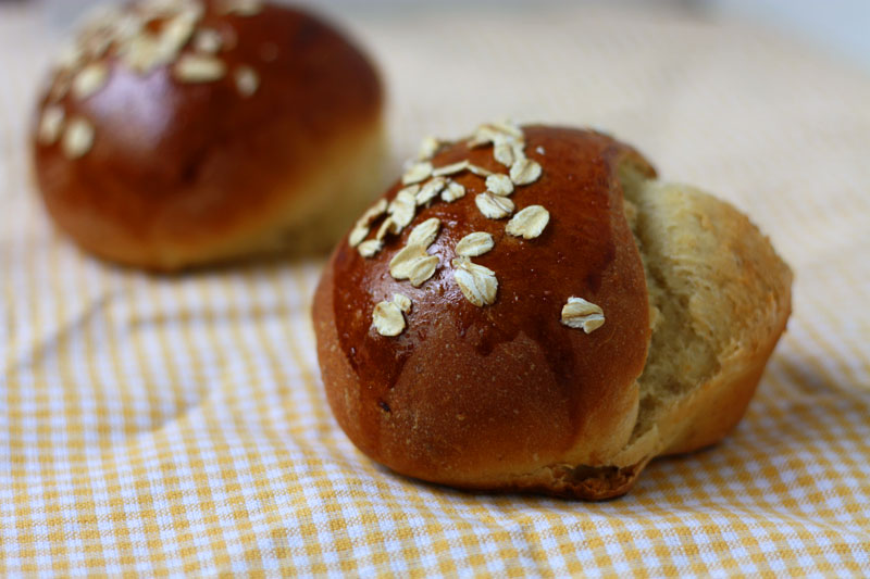 At this point I was quite convinced that these were going to be the eggiest, ickiest rolls ever. But I baked them anyhow, just to make sure – and they were yummy! Fairly eggy, to be sure. But that can be a good thing. Compared to regular rolls, the were richer, denser, and somehow also more tender. They weren’t really hearty the way they were intended to be, but the chewiness imbued by far too much egg was actually pretty good. Definitely better when still still warm, but what isn’t? Anyhow, I’ve concluded that if I can be this incompetent and still make decent bread, perhaps it isn’t something to be scared of after all.
