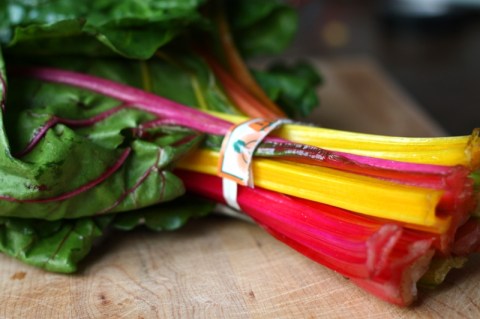 - 1 1/2 pounds Swiss chard (preferably rainbow or red; from 2 bunches)