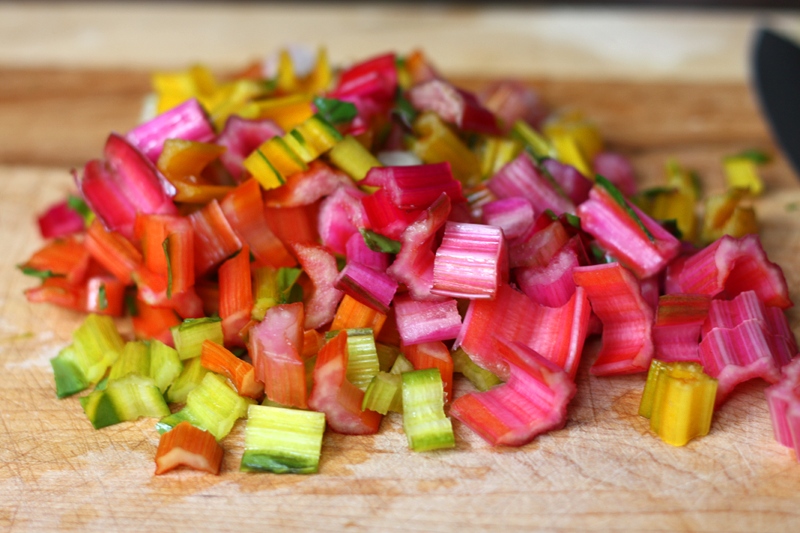 This recipe is from a few weeks ago, when I saw an irresistible bunch of rainbow chard. I’ve never seen such a gorgeous vegetable! I talked it up to everyone, although for some reason no one quite shared my enthusiasm for brightly coloured food. The vivid colours didn’t disappoint, though, as this also turned into an incredibly easy and very tasty vegetable dish. I braised the stems and leaves, along with sautéed onions and golden raisins, then sprinkled with toasted pine nuts. It’s a fantastic side dish that’s both delicious and healthy, which is rare for me, and the contrast of textures and sweetness of the raisins makes it a little more interesting than most preparations of chard, which I find can be a bit too virtuous. Sadly the startling colours didn’t persist in the final dish, but I ate it anyhow. And it was good.