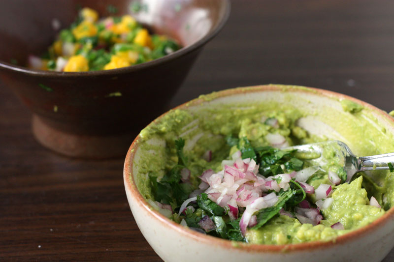Mash avocado in a bowl with a fork. Stir in other ingredients and adjust seasonings to taste. Don’t be shy with the salt!