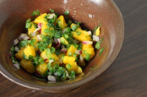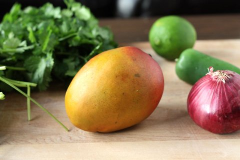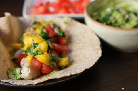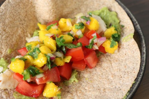 It was a great dinner though: tilapia tacos, with a spread of mango salsa and guacamole. I love meals where you can assemble your own plate, probably a relic of my early years where I was a ridiculously picky eater and didn’t want any condiments on anything, thank you very much. But now I’ve seen the error of my ways and like to aim for the perfect combination of toppings. Here’s my attempt to reconstruct the recipes, but this worked out so well for me, I have faith that it will be foolproof for you too.