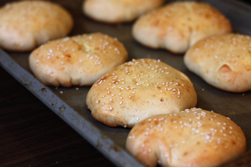 Apparently my bad bread vibes were on vacation this week, and the buns turned out gorgeous. They’re soft, barely sweet, and sturdy enough for a pretty sloppy filling. I made them into kind of weird shapes by accident, but I’m sure most people’s bread skills will yield pretty circles instead of amorphous blobs. They take a good sandwich to great, and are pretty hard to screw up – trust me, I tried.