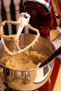 In a medium/large bowl, cream the butter and both sugars. Beat in the egg and vanilla. Add the dry ingredients and mix well. Fold in the chocolate chips.