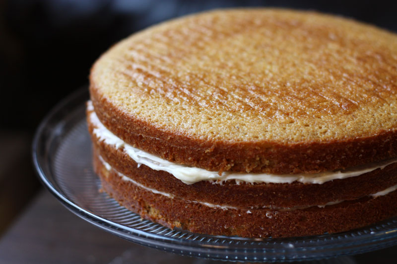A couple weeks ago, though, we got hit by blizzard #2, and I had the chance to hole up indoors, hiding from the harsh weather and feeling excessively cozy. I also was seized by the urge to make a snow-appropriate cake, but only on the condition that I didn’t have to go outside to buy any missing ingredients, which I was pretty sure would lead to a melodramatic death by snowstorm. Luckily, I always have butter and cream cheese in the fridge (healthy person that I am), so it wasn’t too hard to come up with a feasible recipe. I had to substitute the sour cream and reduce the orange peel, but really, who likes citrus that much anyhow? No one, that’s who.