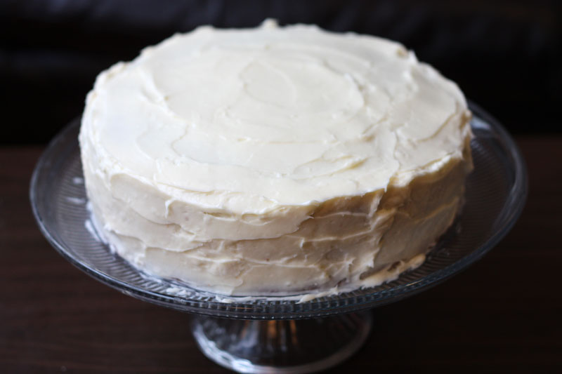 I found that there was just barely enough frosting to coat the cake. I liked the ratio, but if you’re a frosting fanatic you might want to up the frosting recipe by a half.