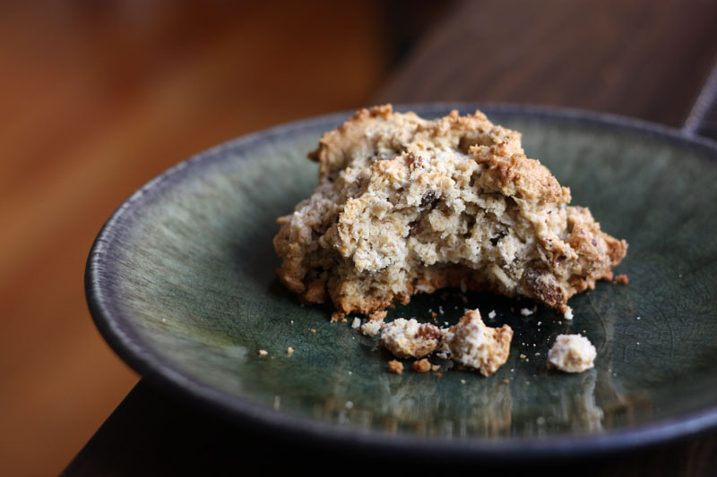 Well, yesterday the cookbook finally arrived, and distractible as I am I never actually made it to the cookies. I stopped at the very first recipe: maple oatmeal scones. They sounded perfect for fall and they definitely are: buttery and nutty and not too sweet. They’re very different from my other favourite scones: more texture from the oats, and with lovely crunchy bits from the nuts and craggy tops. By the time my roommates all woke up, they’d filled the house with the smell of maple, and I felt very productive for having baked before anyone else was up. It was made slightly easier by the fact that that was around 2 pm, but it still counts.