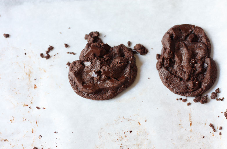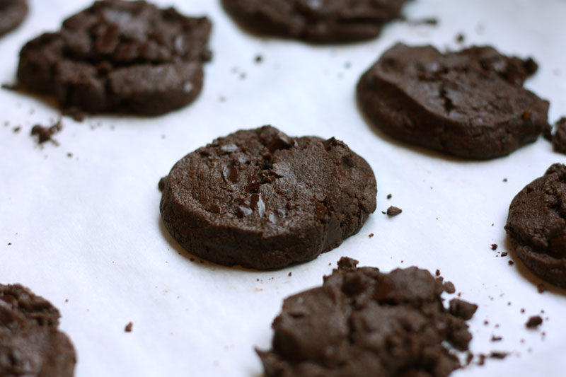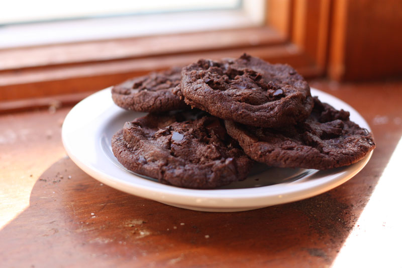 Anyhow, I thought this was my secret ultra-amazing cookie recipe until I discovered food blogs and realized that pretty much everyone has made these cookies. But if you haven’t yet, now’s your chance! They’re a bit crumbly but somehow still so buttery that they melt in your mouth, and have a strong dark chocolate flavour with just a hint of salt. I would hate to have to choose a favourite, but these might be it, and given the quantities of cookies I have eaten that’s pretty high praise.