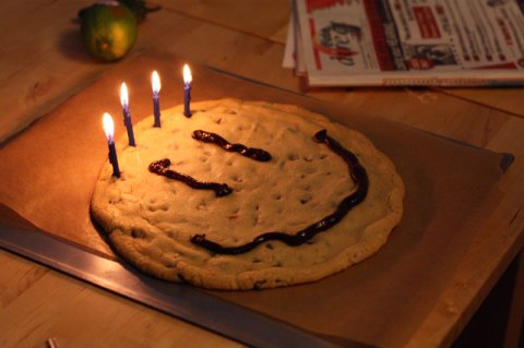 I gave this cookie to a great friend for her birthday, and I recommend you all do the same! Firstly, because it’s even cuter when you use candles for hair. And secondly, because you will otherwise eat the whole thing at once. After all, it’s only one cookie.